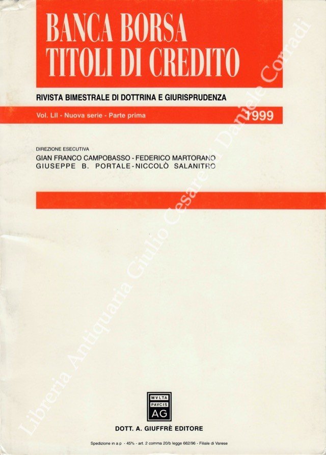 Banca borsa e titoli di credito. Rivista di Dottrina e Giurisprudenza. Fondata da Francesco Messineo e Giacomo Molle. Anno LII - Nuova Serie - 1999