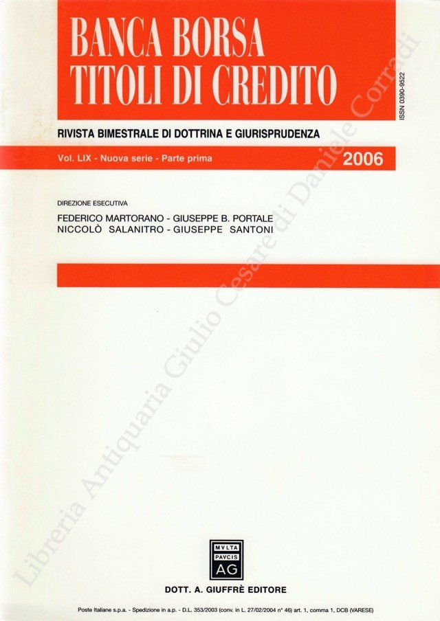 Banca borsa e titoli di credito. Rivista di Dottrina e Giurisprudenza. Fondata da Francesco Messineo e Giacomo Molle. Anno LIX - Nuova Serie - 2006