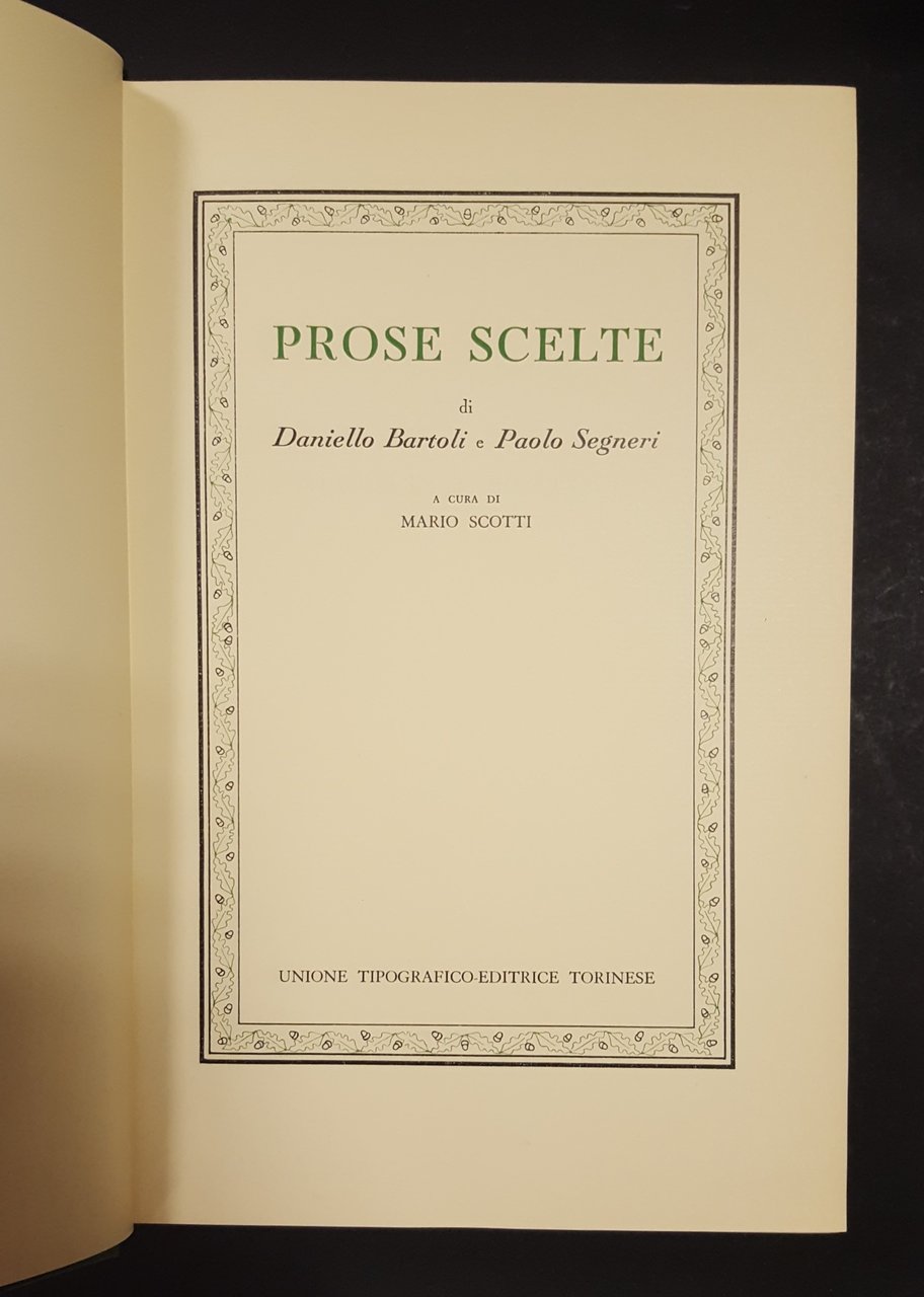 Bartoli Daniello, Segneri Paolo. Prose scelte. Utet. 1969. In-8. Cartonato con titoli e fregi in oro al dorso. pp. 776. Con acetato protettivo. Ottimo