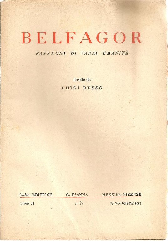 Belfagor. Novembre 1951 | Libros antiguos y modernos | BELFAGOR Rassegna di varia umanità,