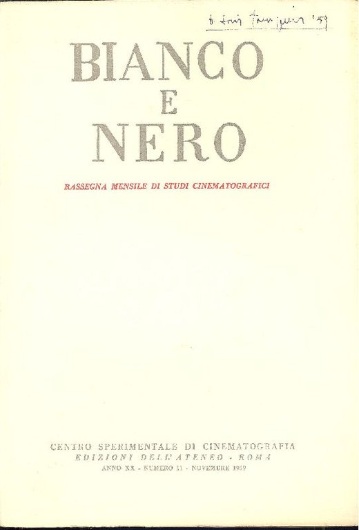 Bianco e Nero. Anno XX, Numero 11, Novembre 1959