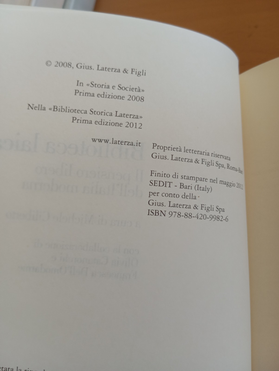 Biblioteca laica. Il pensiero libero dell'Italia moderna, Michele Ciliberto 2008