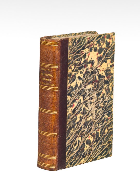 1 vol. in-12 reliure de l'époque demi-basane marron : Biographie des Ministres de la République, de l'Empire, des Bourbons de la branche aînée et de Louis-Philippe, Maison Berthellemot, Rosselet éditeur, Paris, 1836, 192 pp. et 2 ff. [ Edition originale ] [ Suivi de : ] Biographie des Représentants du Peuple à l'Assemblée Nationale Constituante, avec un tableau des députations par Départements, par les Rédacteurs de Notre Histoire, Au Bureau de Notre Histoire, Paris, 1848, 378 pp. avec 6 portraits hors texte Bon exemplaire bien relié, réunissant ces deux recueils de biographies.