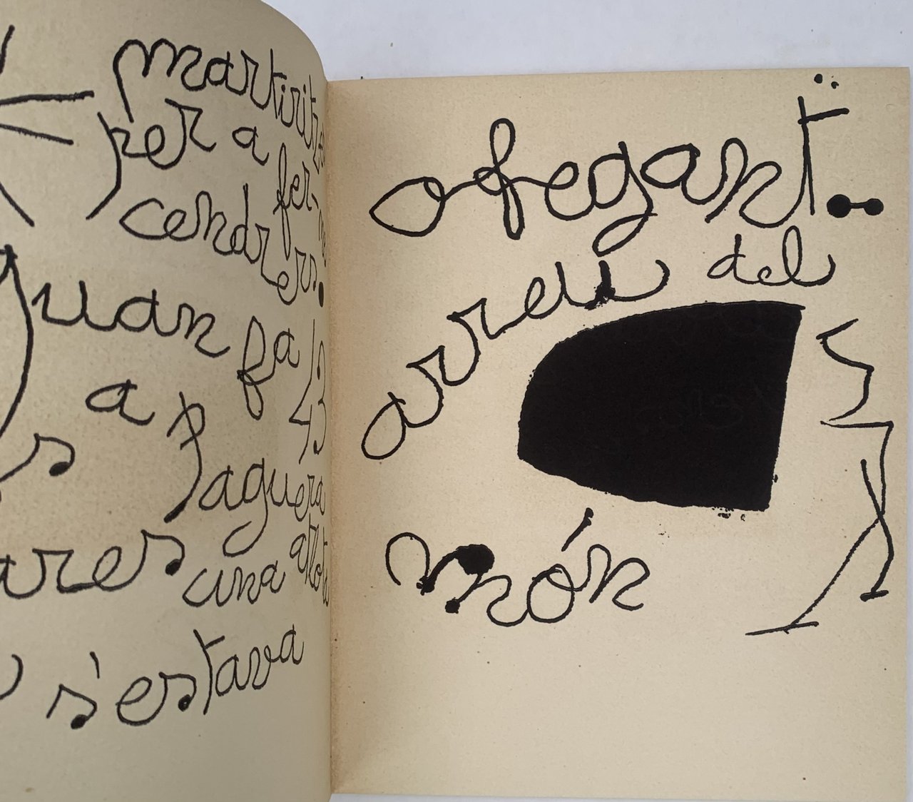 Catalogo di mostra, Barcellona, Sala Gaspar, settembre 1973. Con 25 illustrazioni in b/n di dipinti e gouaches e una sezione composta da 16 pagine di carta a mano pesante color beige stampate in litografia in nero e colori che riproducono il testo autografo di una lettera-poesia di Joan Mirò a Calder (29/VIII/1972, "Sandy Sandy Sandy") . Cm 22,5x18. pp. 64. . Molto buono (Very Good). . . .