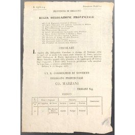 Circolare. Regia Delegazione Provinciale. Nomina di Giovanni Battista Mosca come Perito Agrimensore della provincia di Belluno e da aggiungersi all'elenco degli Ingegneri | Libros antiguos y modernos | Regno Lombardo-Veneto - Provincia Di Belluno - Tessari