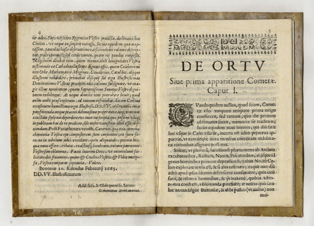 Cometes Bononiae observatus anno 1664 & 1665. Astronomicophysica dissertatio Geminiani Montanarij I.V.D. Mutinensis in almo Bononiensi Archigymnasio mathematicorum scientiarum publici professoris. Ad illustriss. DD. sapientissimi Bononiensis Senatus quinquaginta viros.