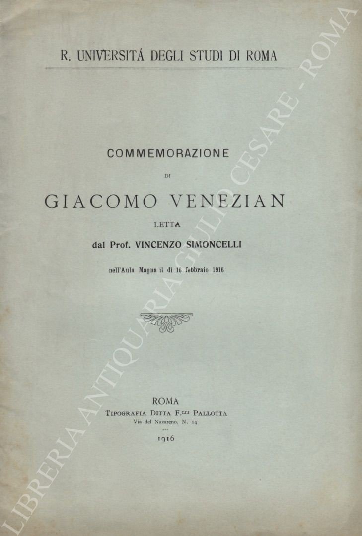 Commemorazione di Giacomo Venezian letta dal Prof. Vincenzo Simoncelli nell'Aula Magna il di 16 febbraio 1916 | Libros antiguos y modernos | Simoncelli Vincenzo