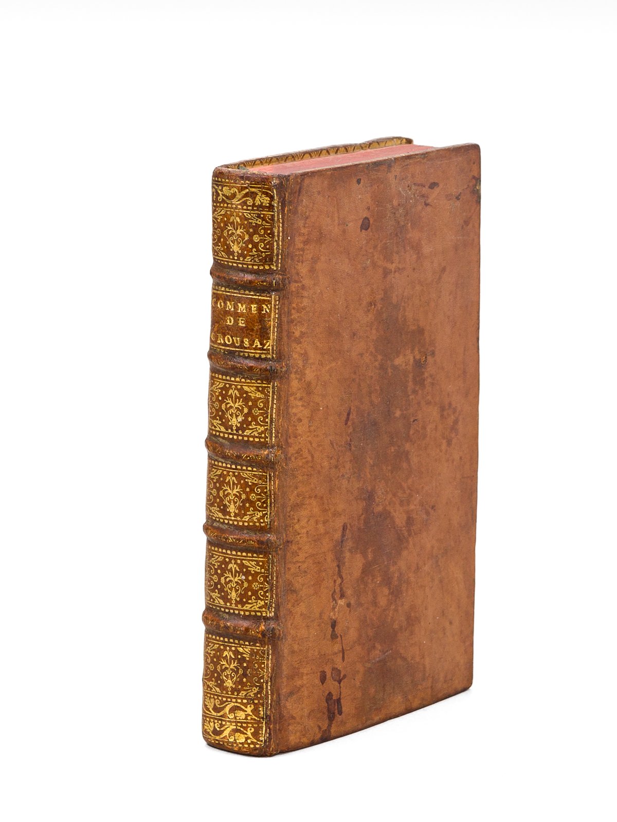 1 vol. in-12 reliure de l'époque plein veau raciné, dos à 5 nerfs orné, Chez Pellissari & Comp., A Genève, 1738, 3 ff., 375 pp. Rare et bon exemplaire de l'édition originale de cet ouvrage du philosophe et mathématien suisse Jean-Pierre de Crousaz (1663-1750). Il avait fait paraître l'année précédente un "Examen de l'Essai de M. Pope sur l'homme". Bon exemplaire (reliure très lég. frottée, petits frott. en coins, très bon état par ailleurs)