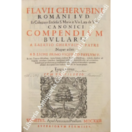 Compendium Bullari a Laertio Cherubino patre Nuoer editi A.B. Leone primo usque ad Paulum V. In tres Tomos distinctum: iuxta seriem eiusdem Bullarij dispositum: Scholijs duobus ad singulas cuiusque Pontificis Sanctiones autum: nonnullis alijs ad eorumdem Scholiorum praesinitionem constitutionibus opportunis ornatum: optatum assidue & copiosissimo Indice refertum: in lucem prodit | Libros antiguos y modernos | Cherubini Flavio - Cherubini Flavii Et Collegiatae Ecclesiae S., Mariae In Via Lata Del Urbe Canonici