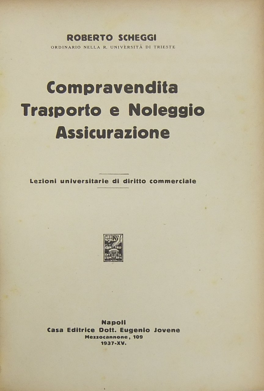 Compravendita Trasporto e Noleggio Assicurazione. Lezioni universitarie di diritto commerciale | Libros antiguos y modernos | Scheggi Roberto