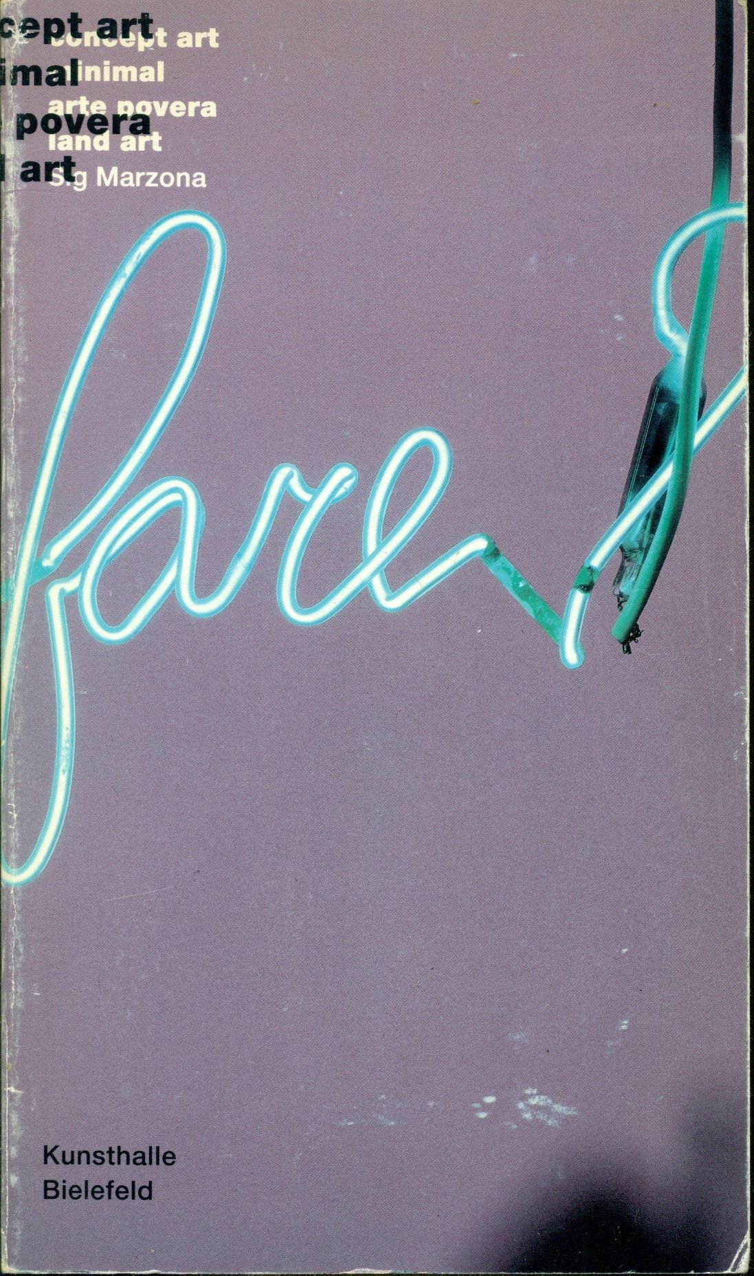 Catalogo della mostra alla Kunsthalle di Bielefeld, 18 febbraio - 8 aprile 1990. Tra gli artisti: Vito Acconci, Carl André, Giovanni Anselmo, John Baldessari, Robert Barry, Bernd & Hilla Becher, Rolf Bendgens, Ella Bergmann-Michel, Mel Bochner, Constantin Brancusi, Marcel Broodthaers, Stanley Brouwn, Daniel Buren, Victor Burgin, Alan Charlton, Hanna Daboven, Walter de Maria, Jan Dibbets, Marcel Duchamp, Dan Flavin, Hamish Fulton, Gilbert & George, Dan Graham, Douglas Huebler, Donald Judd, On Kawara, Joseph Kosuth, Jannis Kounellis, Gary Kuehn, Sol LeWitt, El Lissitzky, Bernd Lohaus, Richard Long, Robert Mangold, Piero Manzoni, Brice Marden, Gordon Matta-Clark, Mario Merz, Hannes Meyer, Laszlo Moholy-Nagy, Piet Mondrian, Robert Morris, Bruce Nauman, Dennis Oppenheim, Blinky Palermo, Panamarenko, Giuseppe Penone, Francis Picabia, Larry Poons, Gerhard Richter, Aleksandr Rodcenko, Ulrich Rückriem, Edward Ruscha, Reiner Ruthenbeck, Fred Sandback, Richard Serra, Robert Smithson, Richard Tuttle, Lawrence Weiner. Numerose illustrazioni in bianco e enro e a colori . cm 23,5x14. pp. 270. . Molto buono (Very Good). . . . La collezione d'arte realizzata negli anni Sessanta e Settanta da Egidio Marzona si è trasformata negli tempo, passando da una dimensione privata ad una pubblica. Nel 1990 si tenne la prima mostra organizzata a Bielefeld; nel 2001 tutta la collezione Marzona fu acquisizita dai Musei Statali di Berlino.
