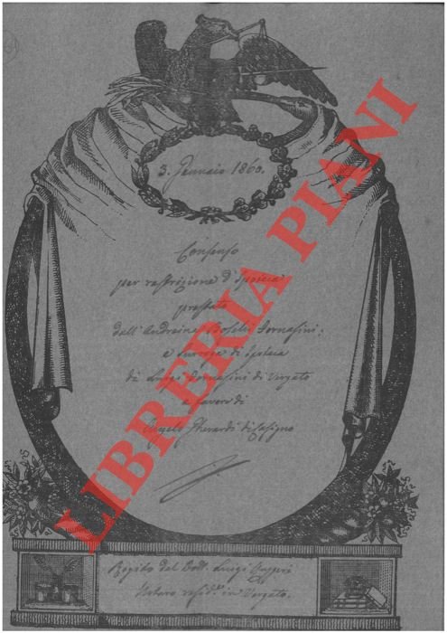 Bologna, 1860, gennaio 3, rogito originale di 8 pagine, in cartella con bella cornice xilografica, timbro a secco, firma del notaio Luigi Ruggeri di Bologna