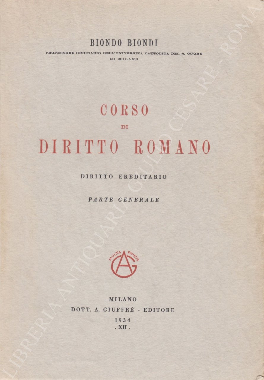 Corso di diritto romano. Diritto ereditario; Parte generale | Libros antiguos y modernos | Biondi Biondo