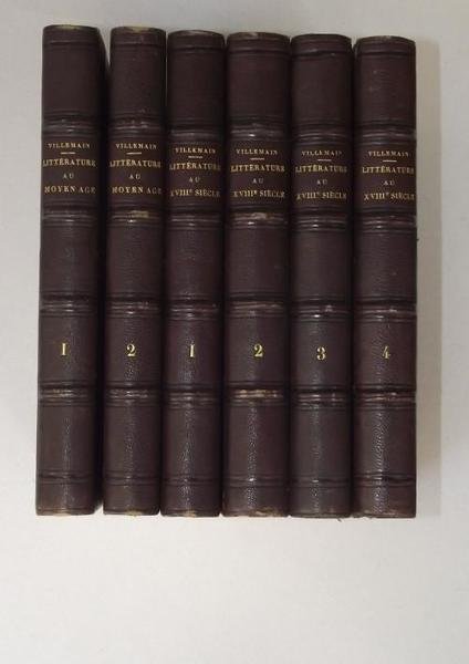 Sei volumi di cm. 21, pp. 2.500 circa complessive. Solida ed elegante legatura coeva uniforme in mezza pelle, dorsi a nervi con titoli in oro. Ottima conservazione. Due volumi sono dedicati alla letteratura del Medio Evo in Francia, Italia, Spagna ed Inghilterra; i successivi quattro volumi riguardano la letteratura del '700.