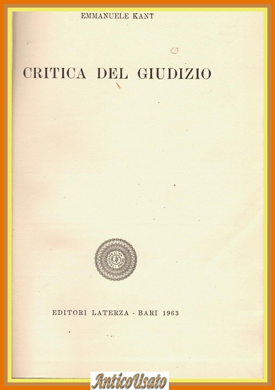 CRITICA DEL GIUDIZIO di Emmanuele Kant 1963 Laterza Bari Libro | Libros antiguos y modernos |