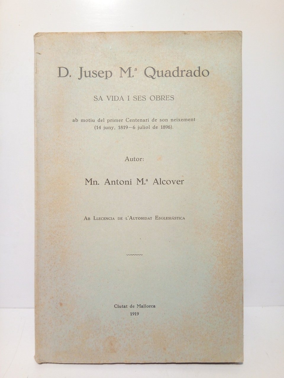 D. Jusep M.ª Quadrado: Sa vida i ses obres ab motiu del primer Centenari de son neixement (14 juny de 1819 - 6 juliol de 1896) | Libros antiguos y modernos | Alcover, Mn. Antoni M.ª