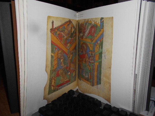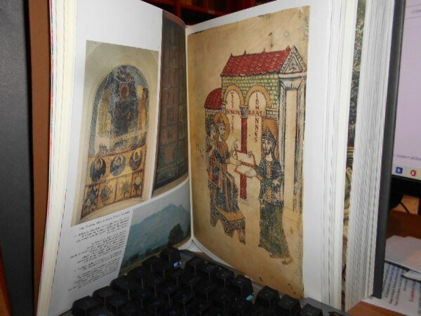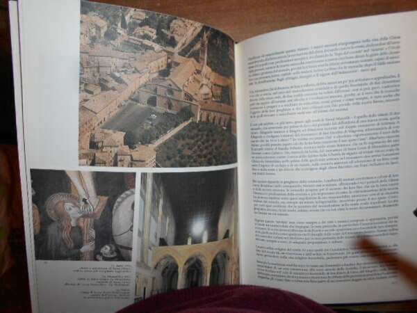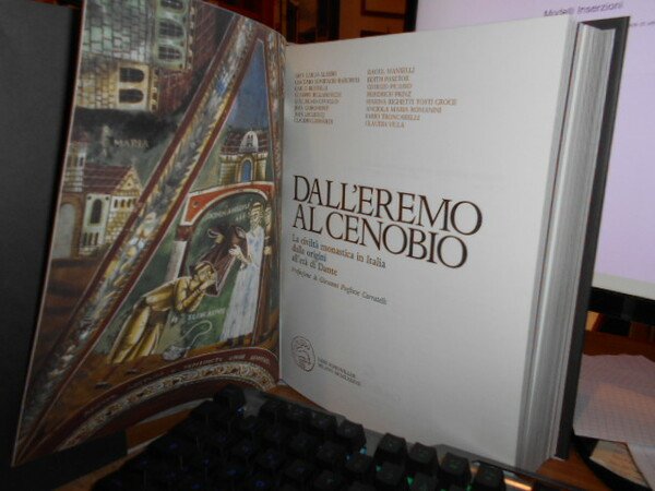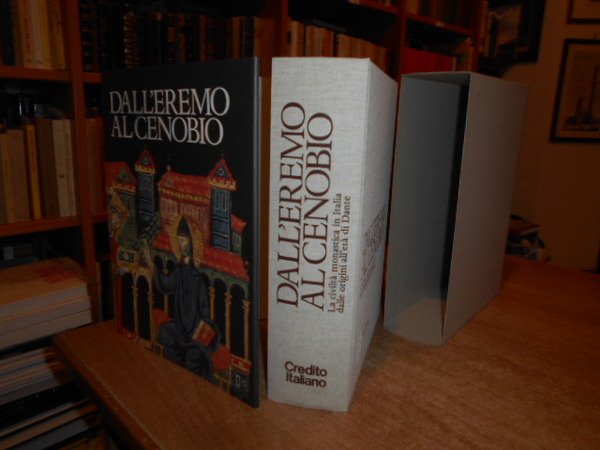 AA. VV. Milano, Libri Scheiwiller per Credito Italiano, 1987. Dall' Eremo al Cenobio. La civiltà monastica dalle origini all' età di Dante. In-4° piccolo, tela edit. con titoli sul piano e al dorso, sovracopertina ill. a col. xiii, 742, (2) pp. con innumerevoli illustrazioni a colori anche a piena pagina e ripiegate. In stato di nuovo co astuccio edit. in cartoncino muto. Uff. stanza TV. mob. fronte nostro in alto