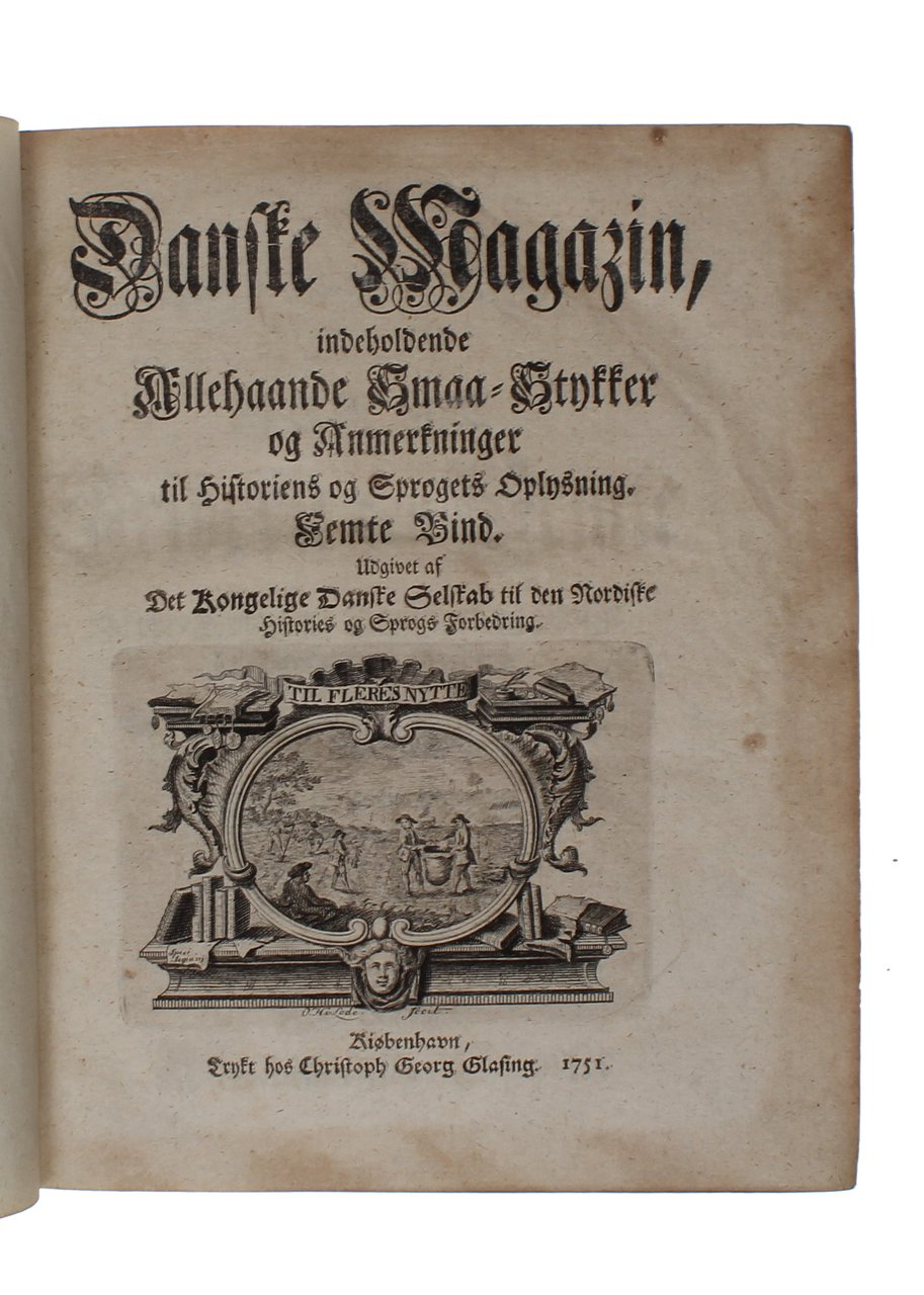 Danske Magazin, indeholdende Allehaande Smaa-stykker og Anmerkninger til Historiens og Sprogets Oplysning. 6 vols.