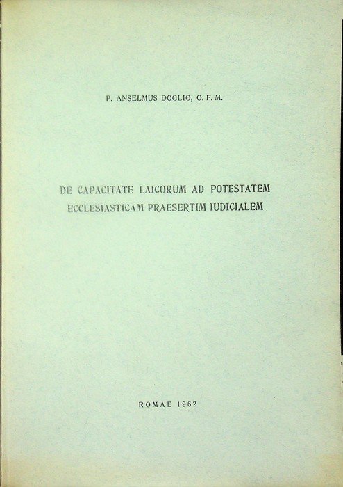 De capacitate laicorum ad potestatem ecclesiasticam præsertim iudicialem. | Libros antiguos y modernos | Doglio, Anselmo.