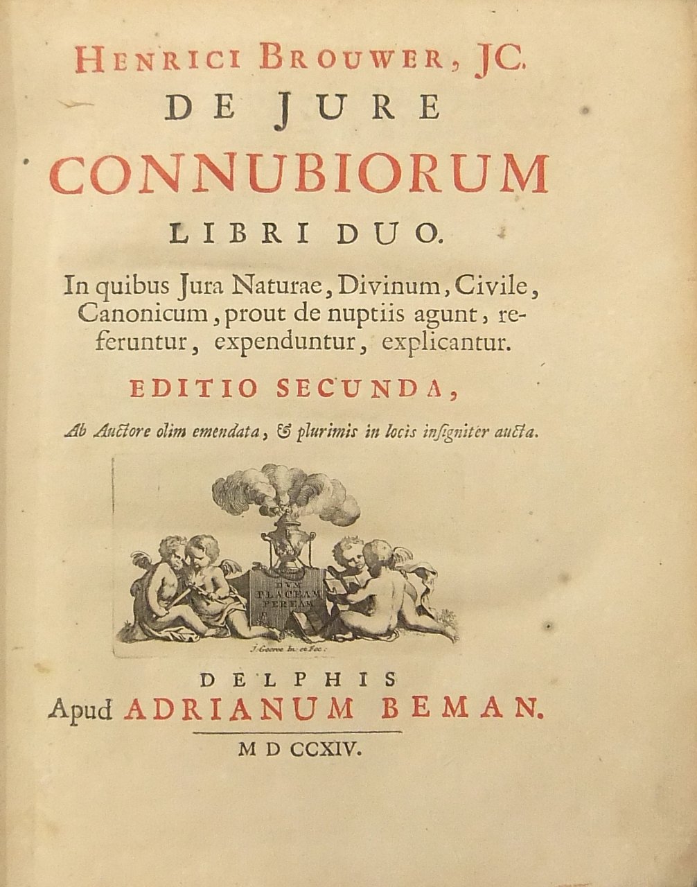 De jure connubiorum libri duo. In quibus jura naturae divinum civile canonicum prout de nuptiis agunt referuntur expenduntur explicantur. Editio secunda ab Auctore olim emendata & plurimis in locis insigniter aucta