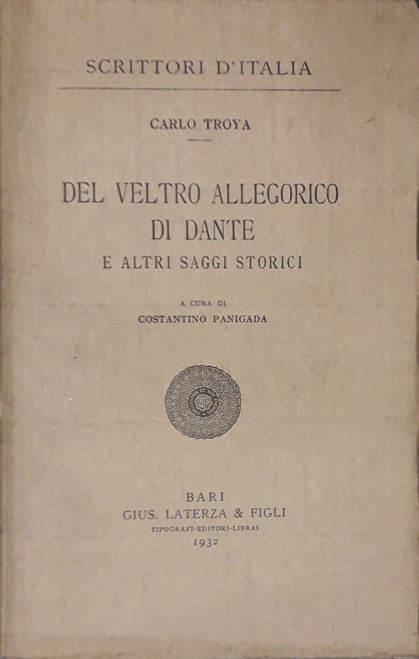 Del veltro allegorico di Dante e altri saggi storici. A cura di Costantino Panigada | Libros antiguos y modernos | Troya Carlo