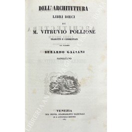 Dell'architettura libri dieci. Di M. Vitruvio Pollione. Tradotti e commentati dal Marchese Berardo Galiani Napolitano; UNITO A: Antico compendio di Architettura di anonimo scrittore emendato dal march. Luigi Marini recato in Italia con note dall'ab. Giovanni Berengo; UNITO A: Tavole di libri dieci dell'architettura di M. Vitruvio Pollione. Tradotti e commentati dal Marchese Berardo Galiani Napolitano