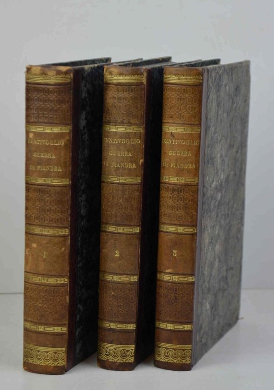 Tre volumi di cm. 21, pp. 1400 ca. complessive. Solida ed elegante legatura coeva in mezza pelle, dorsi lisci con titoli e fregi in oro. Piatti in carta marmorizzata. Esemplare fresco ed in eccellente stato di conservazione.