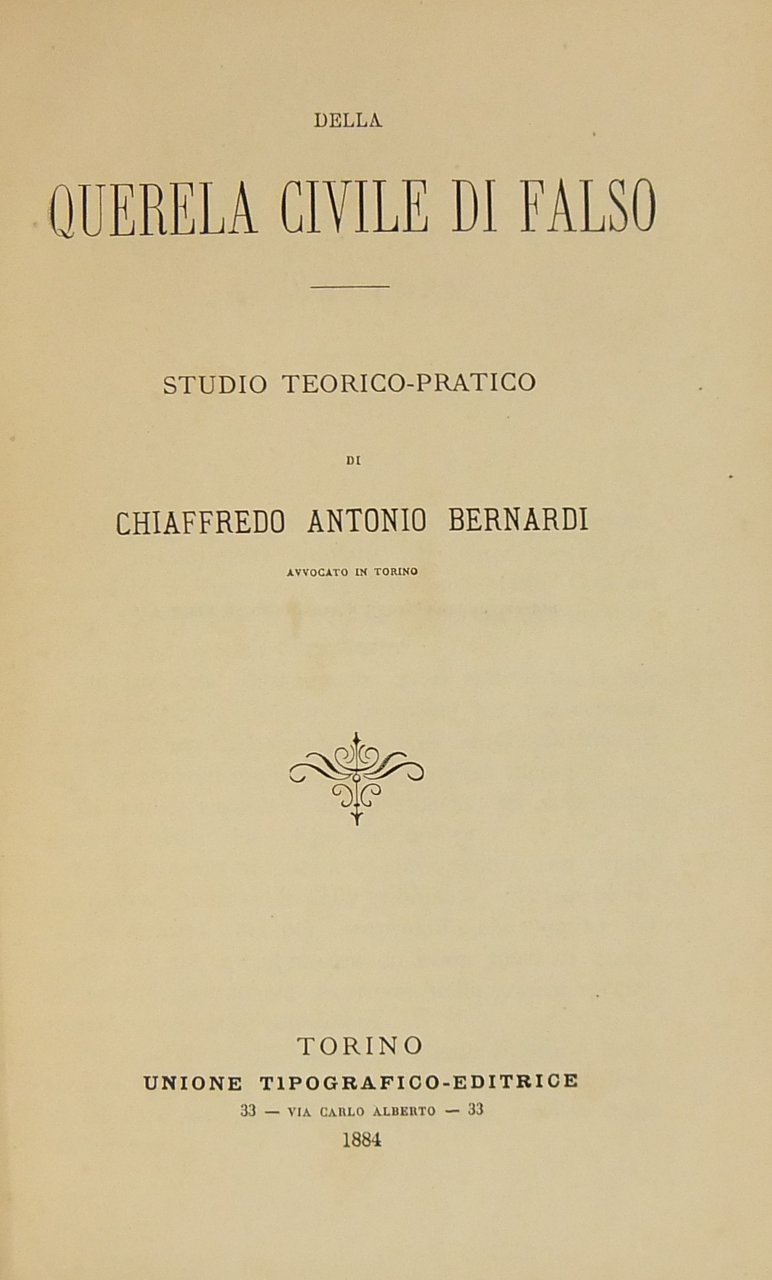 Della querela civile di falso. Studio teorico-pratico | Libros antiguos y modernos | Bernardi Chiaffredo Antonio