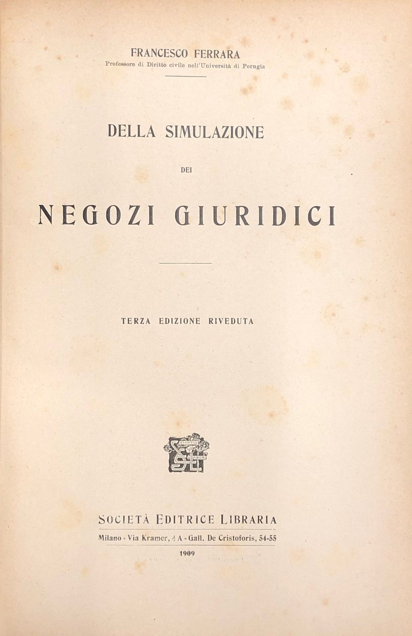 Della simulazione dei negozi giuridici | Libros antiguos y modernos | Ferrara Francesco (1877-1941)