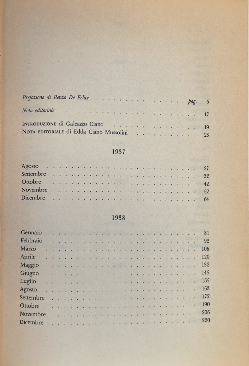 DIARIO 1937-1943 di Galeazzo Ciano — a cura di Renzo De FeliceRizzoli Editore, Collana Storica Rizzoli, I edizione 1980.744 pagine. Copertina editoriale in brossura. Stato di conservazione: molto buono (pagine normalmente ingiallite, manca la sovraccoperta).