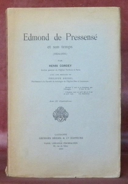 Edmond de Pressensé et son temps. Avec une préface de Philippe Bridel. Avec 20 illustrations.
