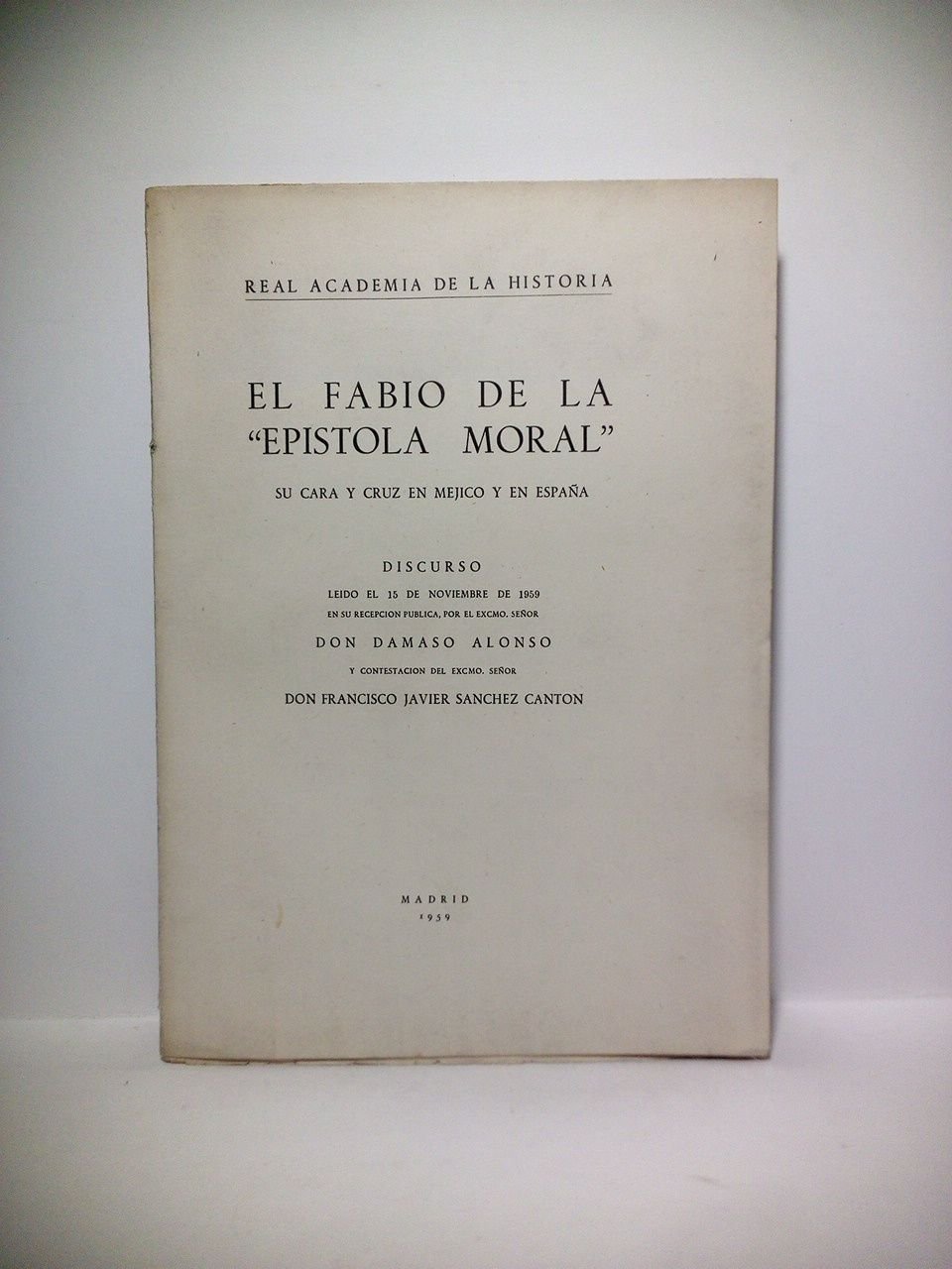 El Fabio de la "Epistola Moral". Su cara y cruz en Méjico y en España. (Disc. de ingreso en la R. Academia de la Historia, leido el 15 de Noviembre de 1959. CONTESTA: F. Javier Sánchez Cantón) | Libros antiguos y modernos | Alonso, Dámaso