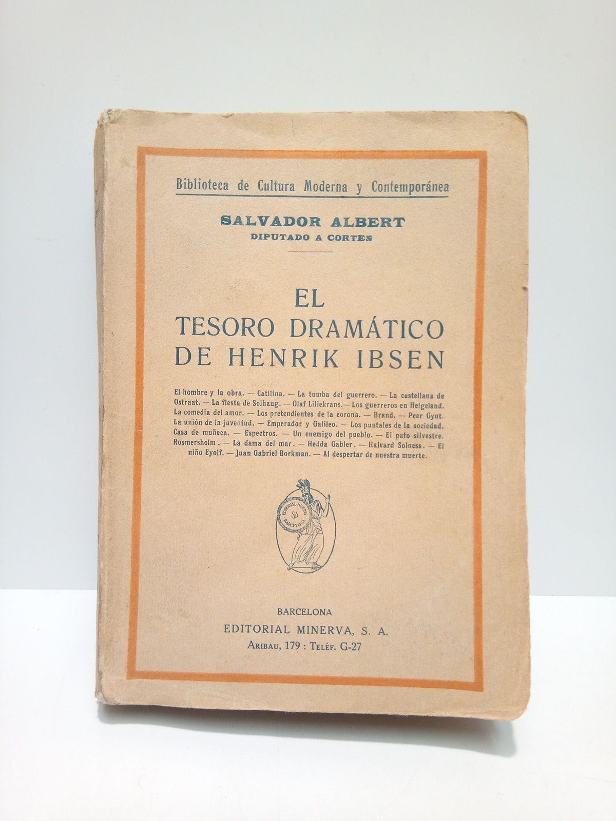 Barcelona: Ed. Minerva, [ca. 1930].- 365 p., [3 h.]: Tras la portada un retrato fotográfico de Ibsen; 8º (18 x 12,7 cm); Rústica Ed.- (Bibl. de Cultura Moderna y Contemporánea).- Interesante libro que, aparte de una introducción sobre Ibsen y su obra que ocupa las primeras 63 páginas, contiene además los argumentos de sus obras más importantes.* Las cubiertas con señales leves del tiempo. Por lo demás muy bien. TEATRO EXTRANJERO DE LOS SIGLOS XVI-XXI