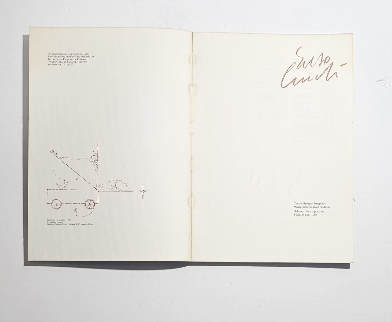 Catalogo originale della mostra dedicata a Enzo Cucchi presso il Centre Georges Pompidou di Parigi, tenutasi dal 4 giugno al 24 agosto 1986.