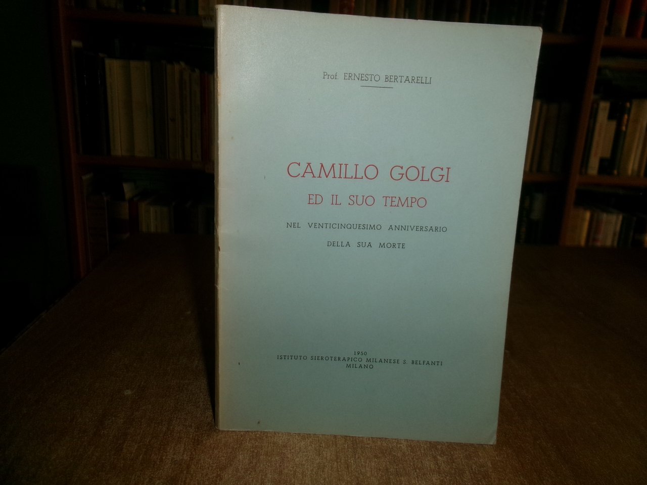 Ernesto Bertarelli. CAMILLO GOLGI ed il suo tempo nel venticinquesimo anniversario della sua morte. Milano, Ist. Sieroterapico Milanese S. Belfanti, 1950. In-8°, br. orig. 58 pp. con ritratto e illustrazioni n.t. Ottimo stato. Neg. mob. 4 in busta trasp.