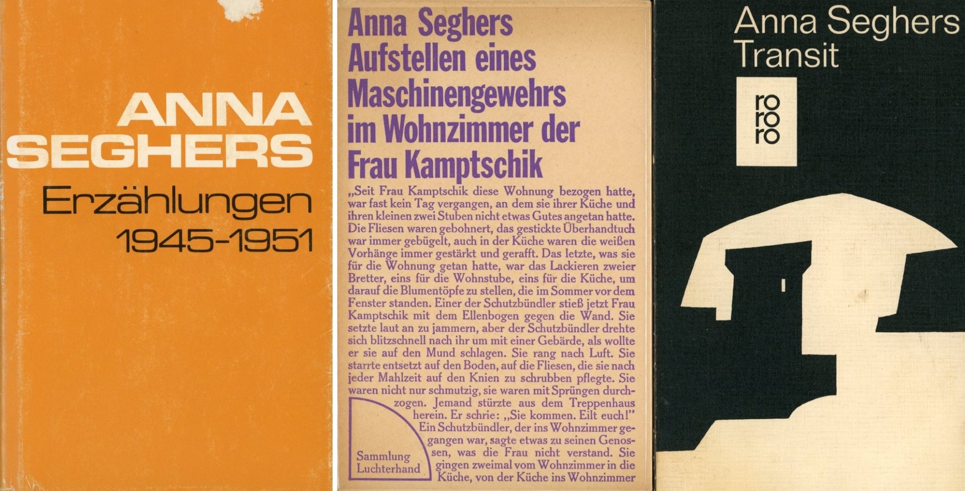 Si aggiungono altri 2 libri dell'Autrice: 1) Anna Seghers, Aufstellen eines Maschinengewehrs im Wohnzimmer der Frau Kamptschik. Luchterhand, 1970; 2) Anna Seghers, Transit. Rowohlt, 1966 . 16mo. pp. 324. . Molto buono (Very Good). . . .