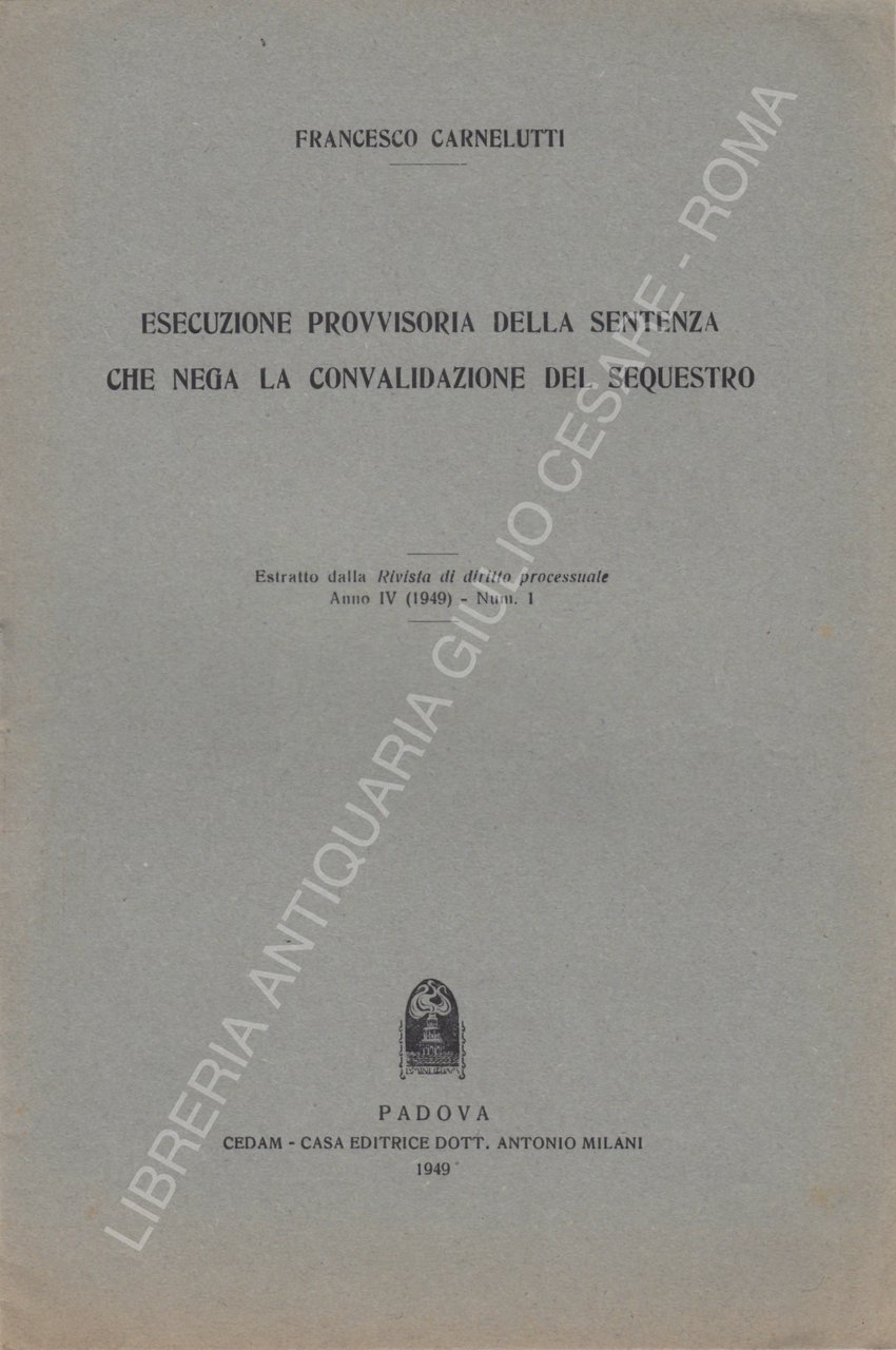 Esecuzione provvisoria della sentenza che nega la convalidazione del sequestro | Libros antiguos y modernos | Carnelutti Francesco (1879-1965)