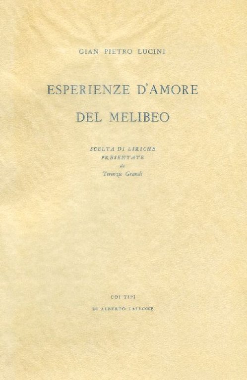 Esperienze d'amore del Melibeo | Libros antiguos y modernos | LUCINI Gian Pietro,