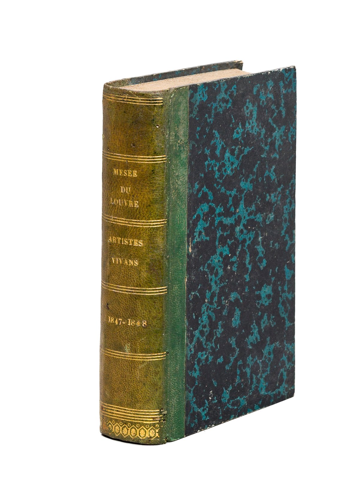1 vol. in-12 reliure demi-basane verte, Vinchon, Fils et Successeur de Me Ve Ballard, Paris, 1847-1848, 326 pp., 6 ff., 395 pp. Rappel des titres complets : Explication des ouvrages de Peinture, Sculpture, Architecture, Gravure et Lithographie des Artistes Vivants exposés au Musée Royal le 16 mars 1847 [ Suivi de : ] Explication des ouvrages de Peinture, Sculpture, Architecture, Gravure et Lithographie des Artistes Vivants exposés au Musée Royal le 15 mars 1848 Réunion de 2 catalogues de l'Exposition au Musée Royal du Louvre, pour les années 1847 et 1848. Bon état (mention "Mesée du Louvre" en dos, trace d'ancien ex-libris en garde).
