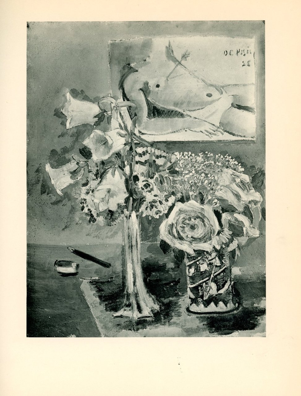 Fondamentale prima monografia di Filippo De Pisis ad opera di Waldemar George, scritta nel pieno del periodo parigino dell'Artista (1925-1939). Con la riproduzione di 24 opere in tavole fuori testo Esemplare n. 148. Cm 28,5x23. pp. 20 + tavole. . Ottimo (Fine). Piccole mancanze al pergamino. Edizione originale di 315 esemplari numerati (Original edition of 315 numbered copies). .