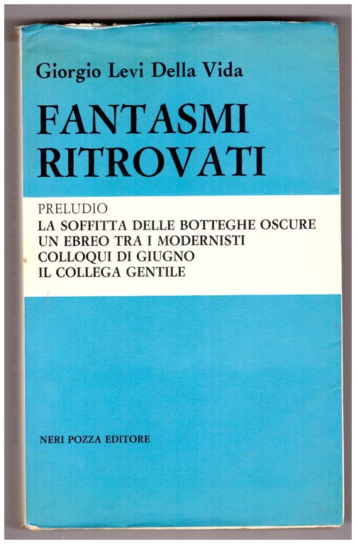 Un volume (22 cm) di 254 pagine. Sommario: Preludio. La soffitta delle Botteghe Oscure. Un ebreo tra i modernisti. Colloqui di giugno. Il collega Gentile. Brossura editoriale con sovracoperta, nella collana Nuova biblioteca di cultura. Prima edizione. Condizioni molto buone.