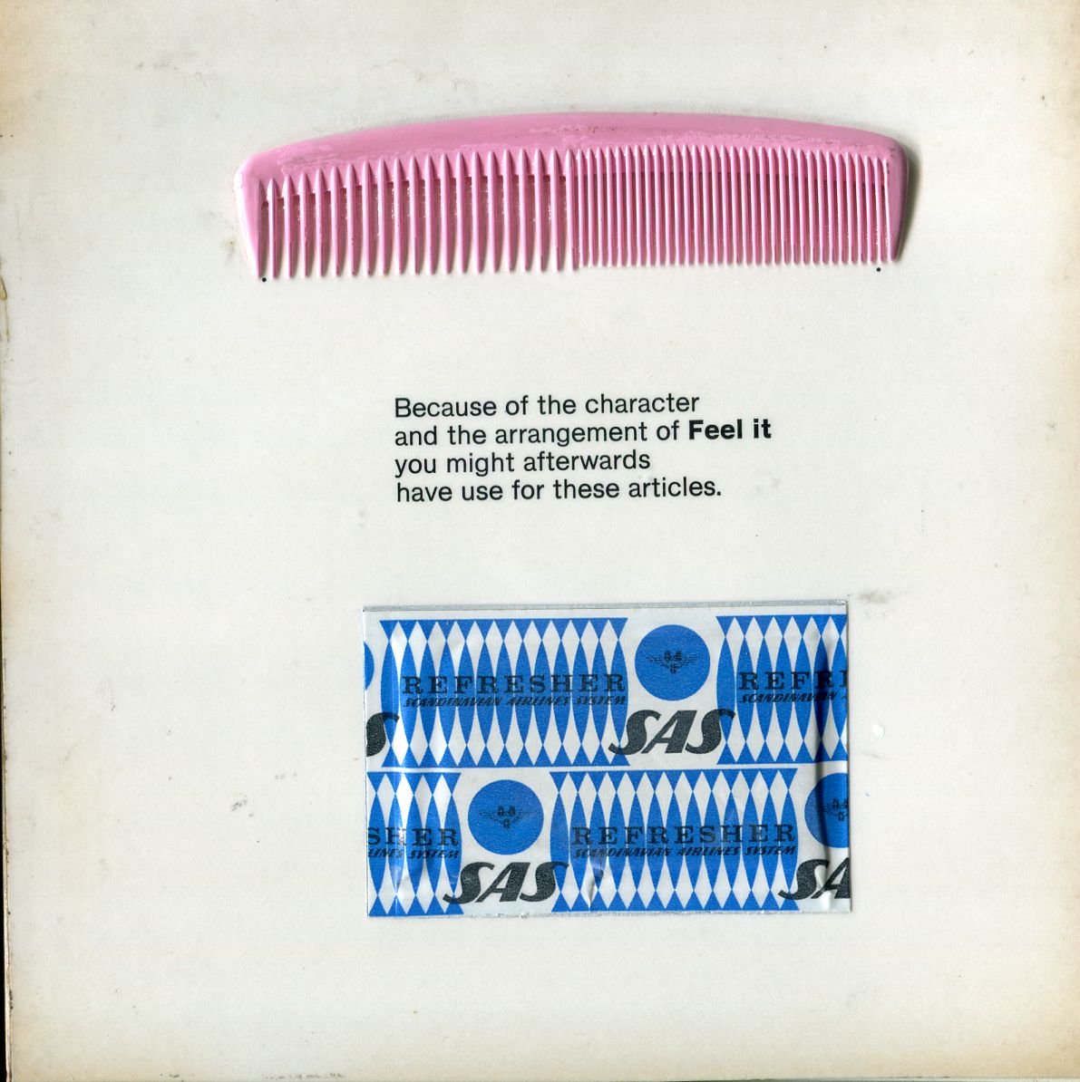 Catalogo della mostra di New York, Museum of Contemporary Crafts of the American Craftsmen's Council. Progetti di Olle Adrin, Erik Hoglund, Ralph Lundsten, Leo Nilson, Bertil Vallien, Lars Gynning, Erkki Kurenniemi, AB Ljudatergivning. Il catalogo include una mappa ripiegata del Museo, un vinile 45 giri ("Made on the electronic music machine Andromatic by Ralph Lundsten and Leo Nilsson"), e inseriti in quarta di copertina: un pettine e una salvietta della Scandanavian Airlines SAS "perché, a causa del carattere e dell'organizzazione della mostra se ne potrebbe aver bisogno", come dichiarato . 8vo (cm 22x22). pp. 14. . Molto buono (Very Good). . . .