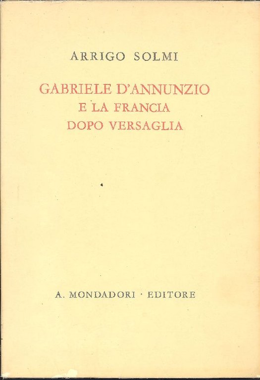 Gabriele D'Annunzio e la Francia dopo Versaglia | Libros antiguos y modernos | D''ANNUNZIO - Solmi Arrigo (a cura di)
