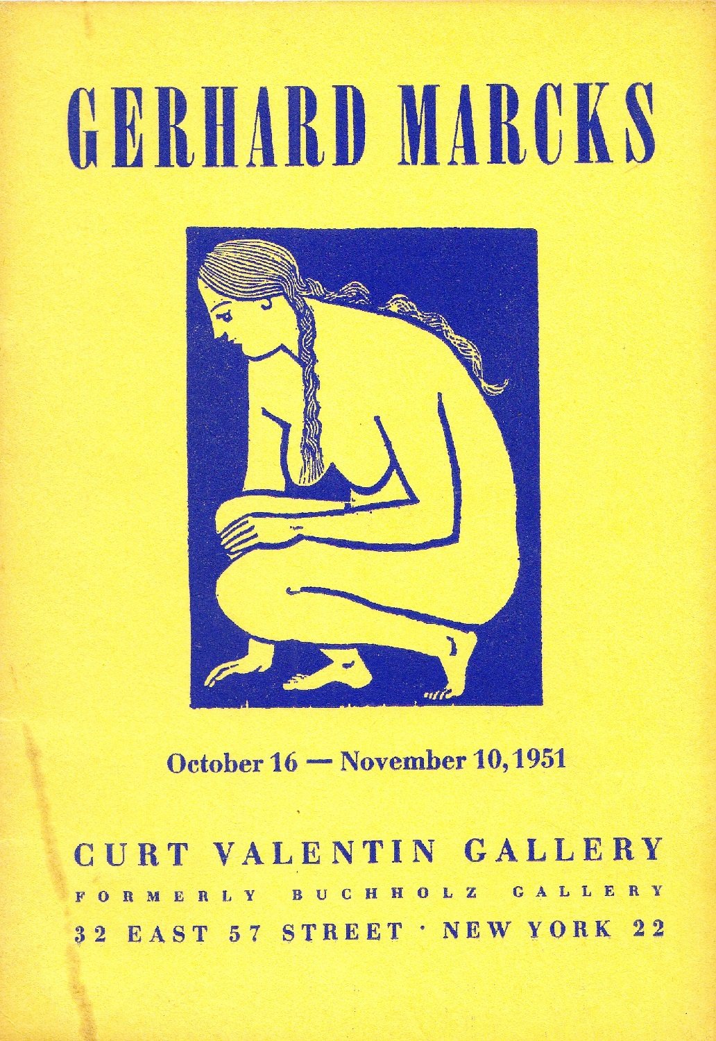 Catalogo della mostra tenutasi presso la Curt Valentine Gallery, New York, 16 ottobre - 10 novembre 1951. Biografia di Gerhard Marcks e una lettera dell'Artista al gallerista Curt Valentine, scritta appositamente per presentare le opere esposte. 21 illustrazioni in bianco e nero. Catalogo delle opere esposte . 16mo (cm 17x12). pp. 16. . Molto buono (Very Good). . . .