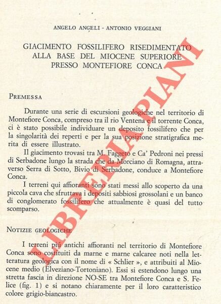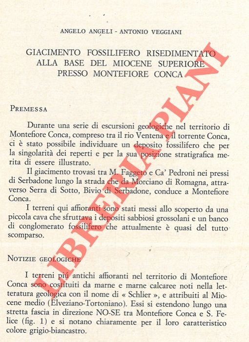 Giacimento fossilifero risedimentato alla base del Miocene superiore presso Montefiore Conca. | Libros antiguos y modernos | Angeli Angelo - Veggiani Antonio