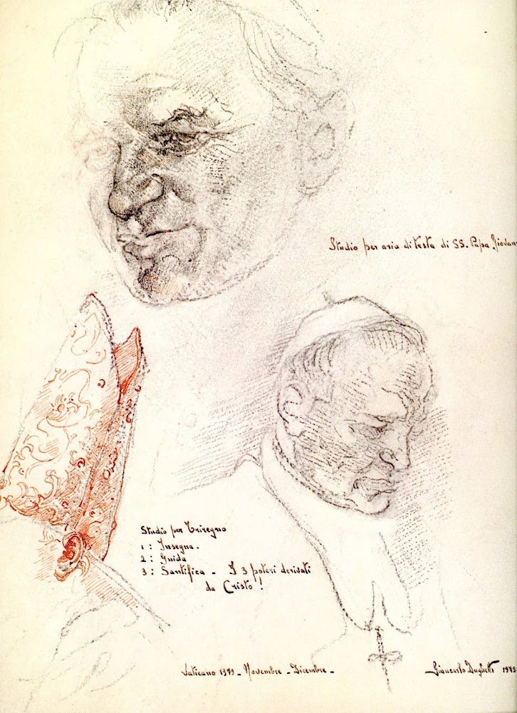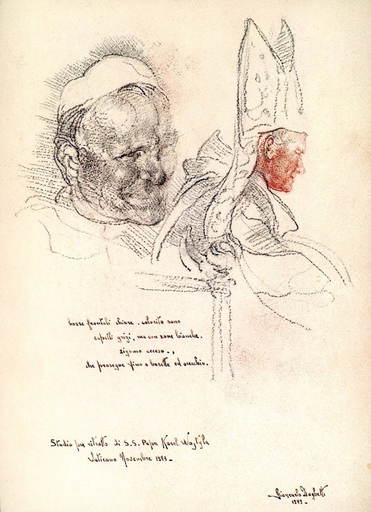 Presentazione di padre Carlo Cremona. Con 7 studi preparatori e un ritratto di Papa Wojtyla terminato. Biografia, attività espositiva e bibliografia ai risvolti della cartelletta . 4to. pp. 4+tavole. . Molto buono (Very Good). Cartella sciupata ai margini con strappetti e mancanze (Some chipping and nicks around top and bottom of slip case). . .