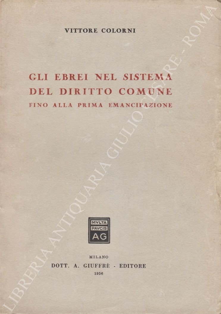 Gli ebrei nel sistema del diritto comune fino alla prima emancipazione | Libros antiguos y modernos | Colorni Vittore