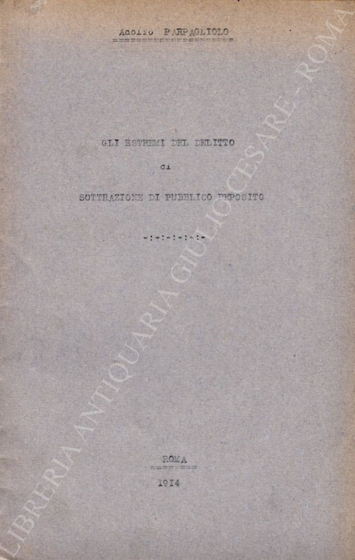 Gli estremi del delitto di sottrazione di pubblico deposito | Libros antiguos y modernos | Parpagliolo Adolfo
