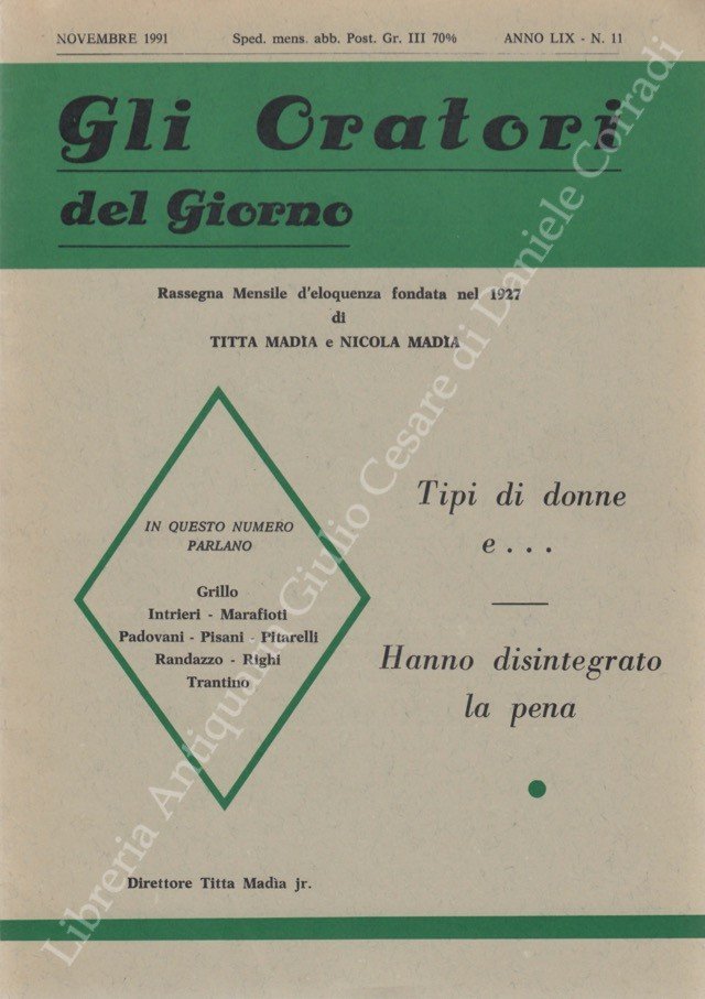 Gli oratori del giorno. Rassegna mensile d'eloquenza. Anno LIX - Numero 11. Novembre 1991 | Libros antiguos y modernos | Padovani T. Et Alii