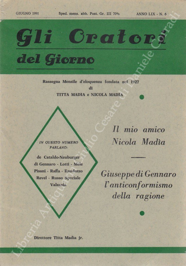 Gli oratori del giorno. Rassegna mensile d'eloquenza. Anno LIX - Numero 6. Giugno 1991 | Libros antiguos y modernos | Pisani A. Et Alii